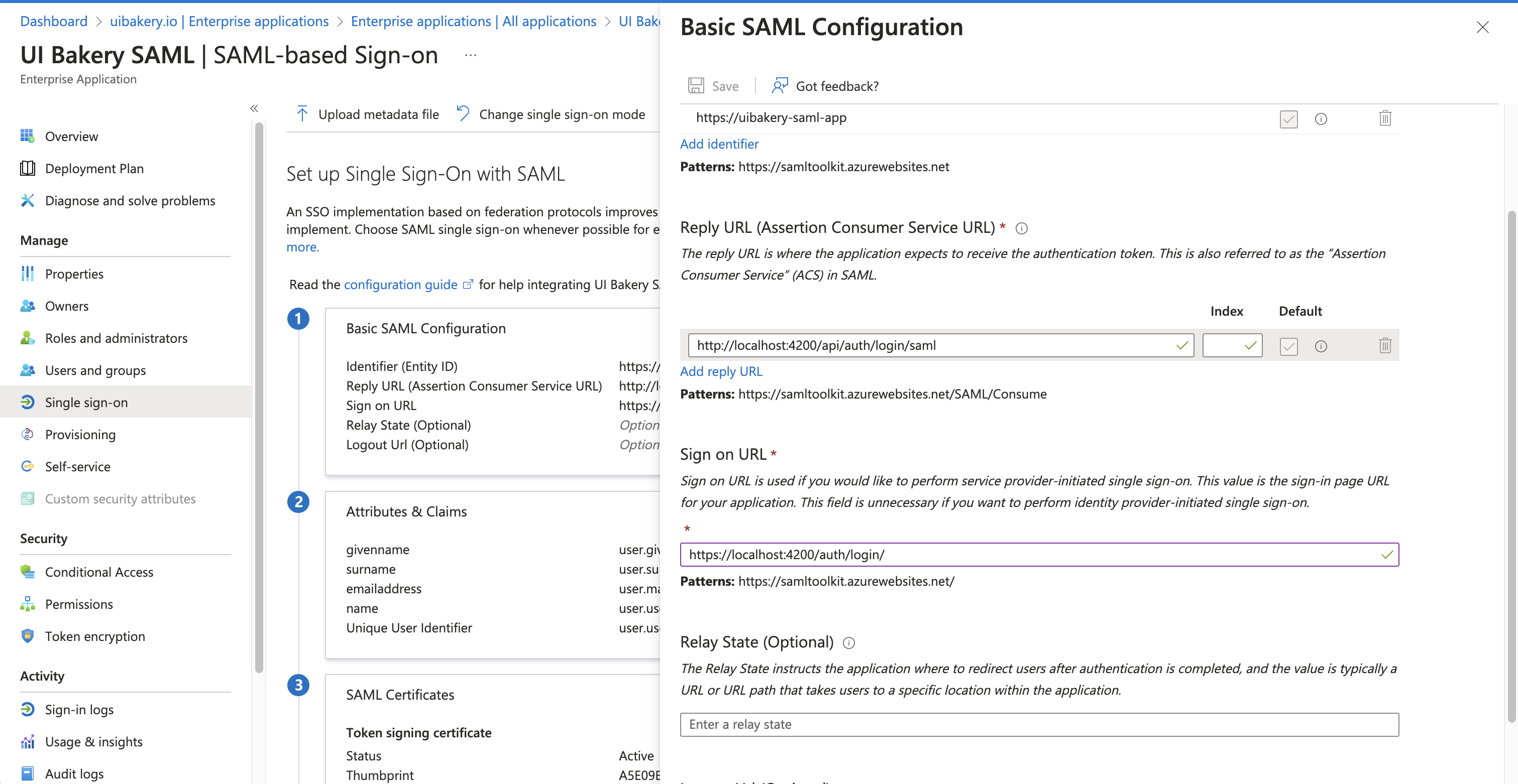 * **Reply URL (Assertion Consumer Service URL).** Should lead to your UI Bakery instance `https://your_site/api/auth/login/saml`