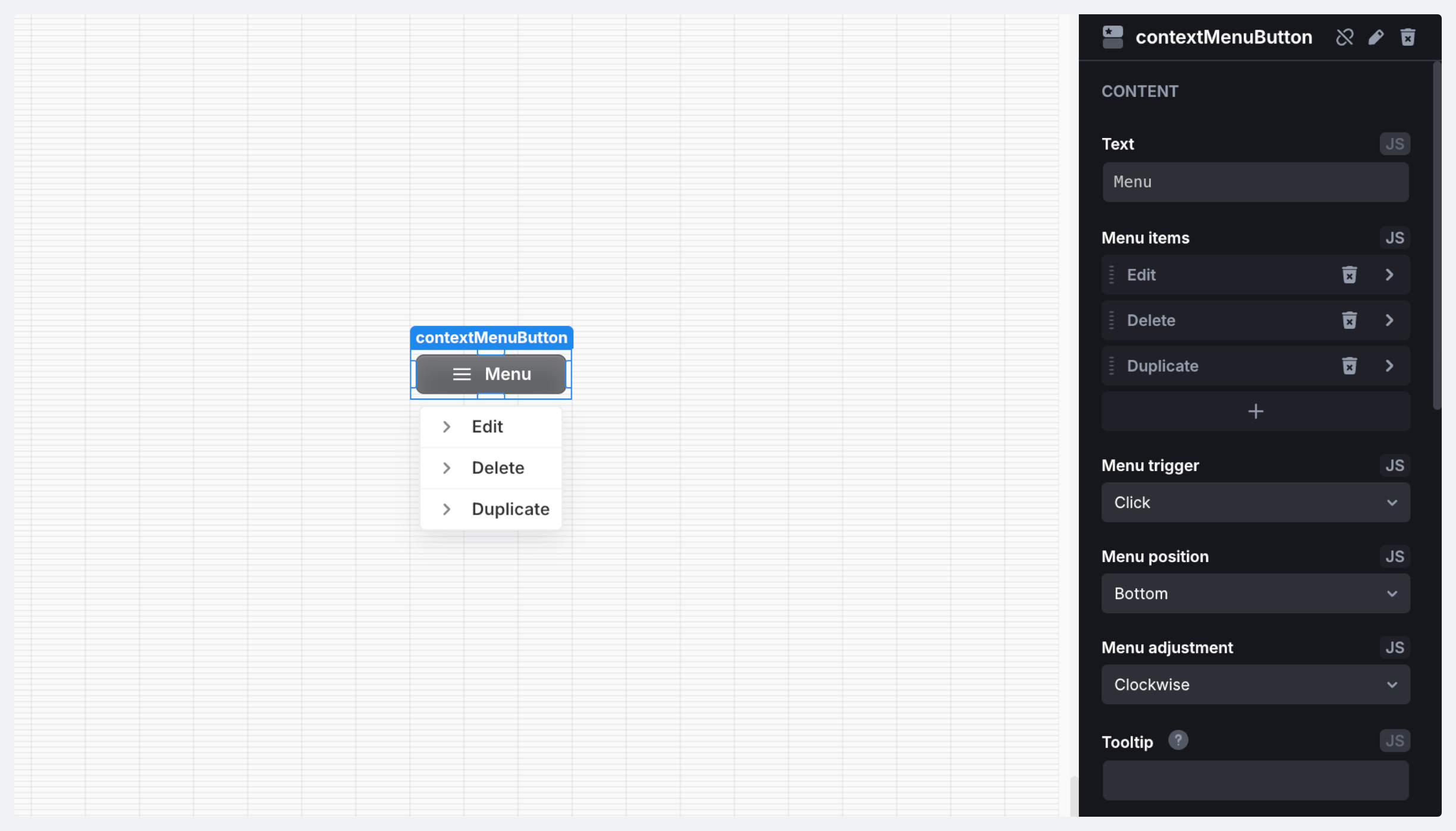 1. Select the Context menu component and set up its menu items.\