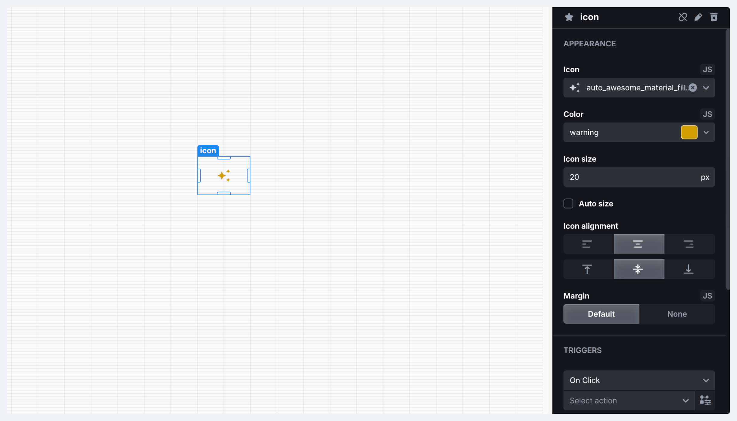An icon image. The component supports different alignment options, sizes, as well as the *Auto size* option.