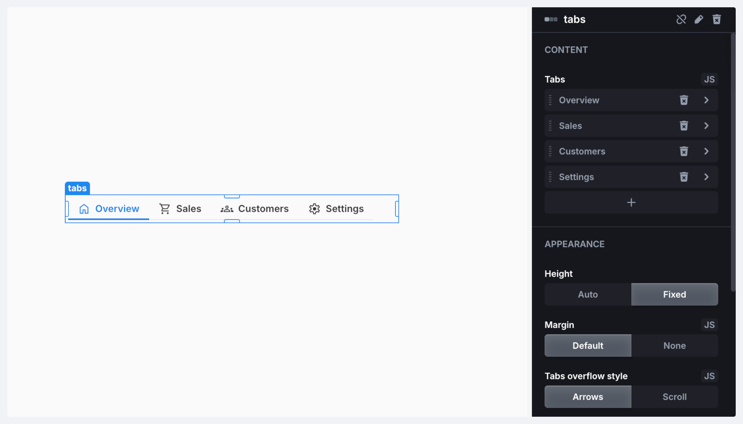 *Tabs overflow* and *text wrap* allow you to control the layout: you can switch between **Arrows** and **Scroll** and enable text wrapping for longer tabs to keep things readable.