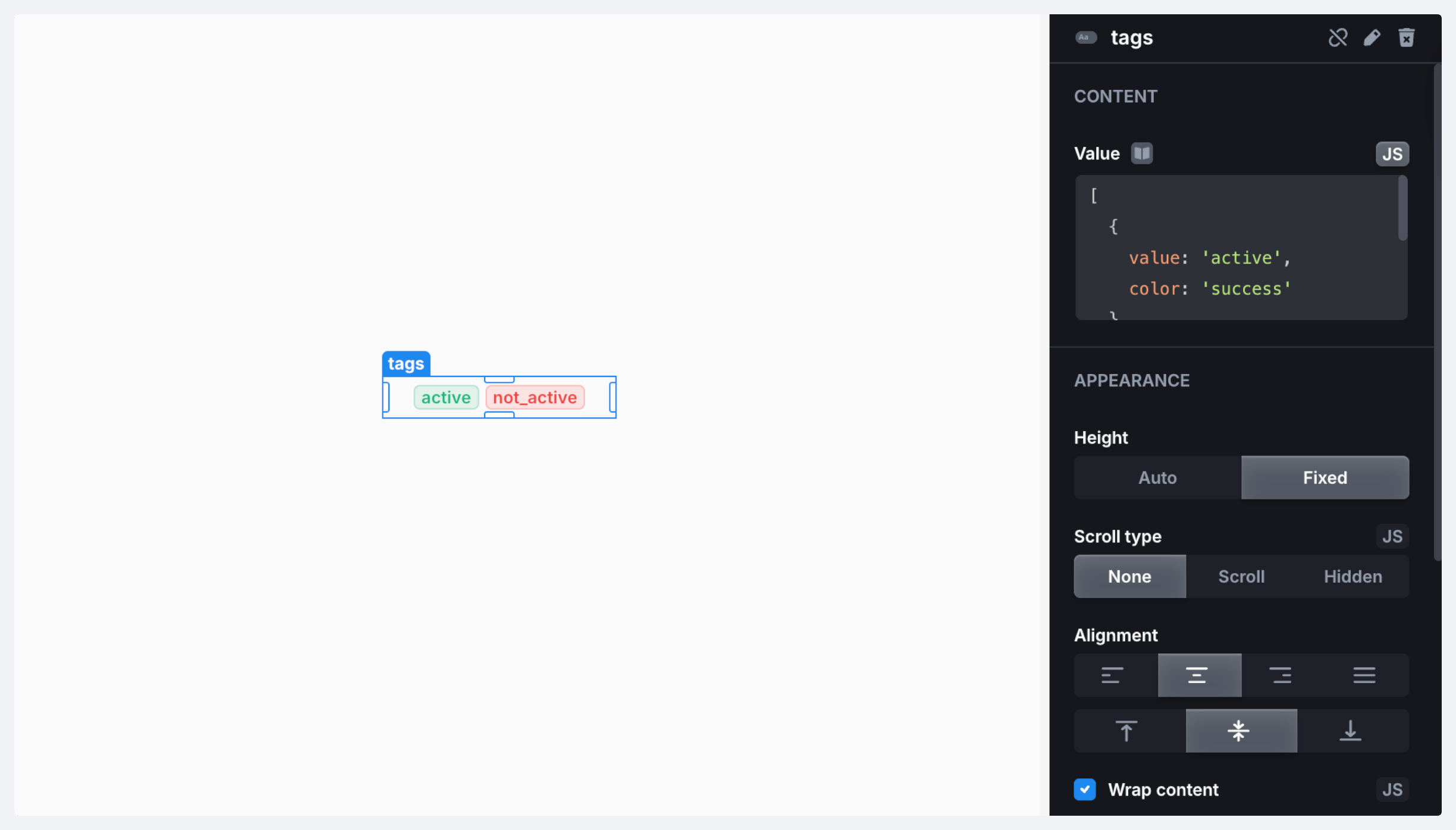 <table><thead><tr><th width="141.6953125">Name</th><th>Description</th></tr></thead><tbody><tr><td><strong>On Init</strong></td><td>Triggered when the component is initialized</td></tr><tr><td><strong>On Tag Click</strong></td><td>Triggered when a tag is clicked</td></tr></tbody></table>
